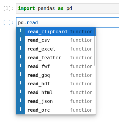 Fig. 1.15 The suggestions that are shown after typing pd.read and pressing Tab.#