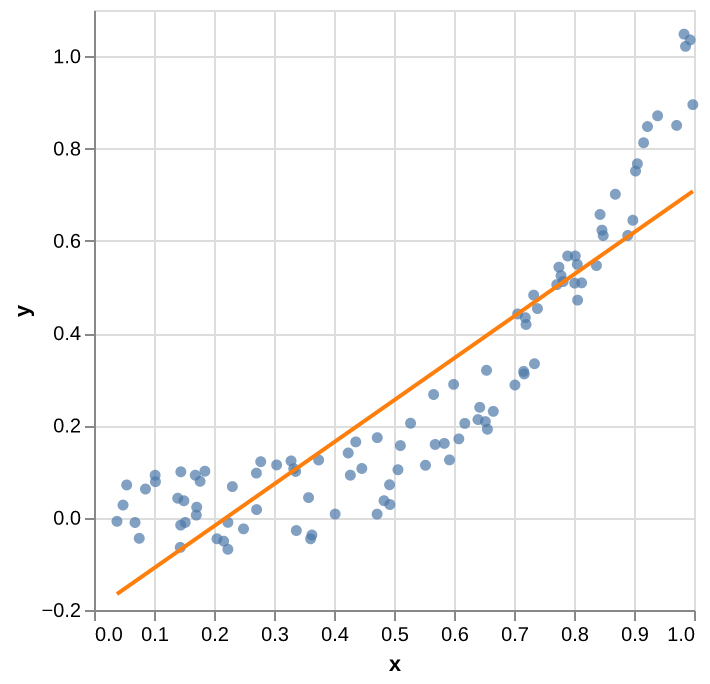 with two variables—x and y—with a nonlinear relationship between the two variables